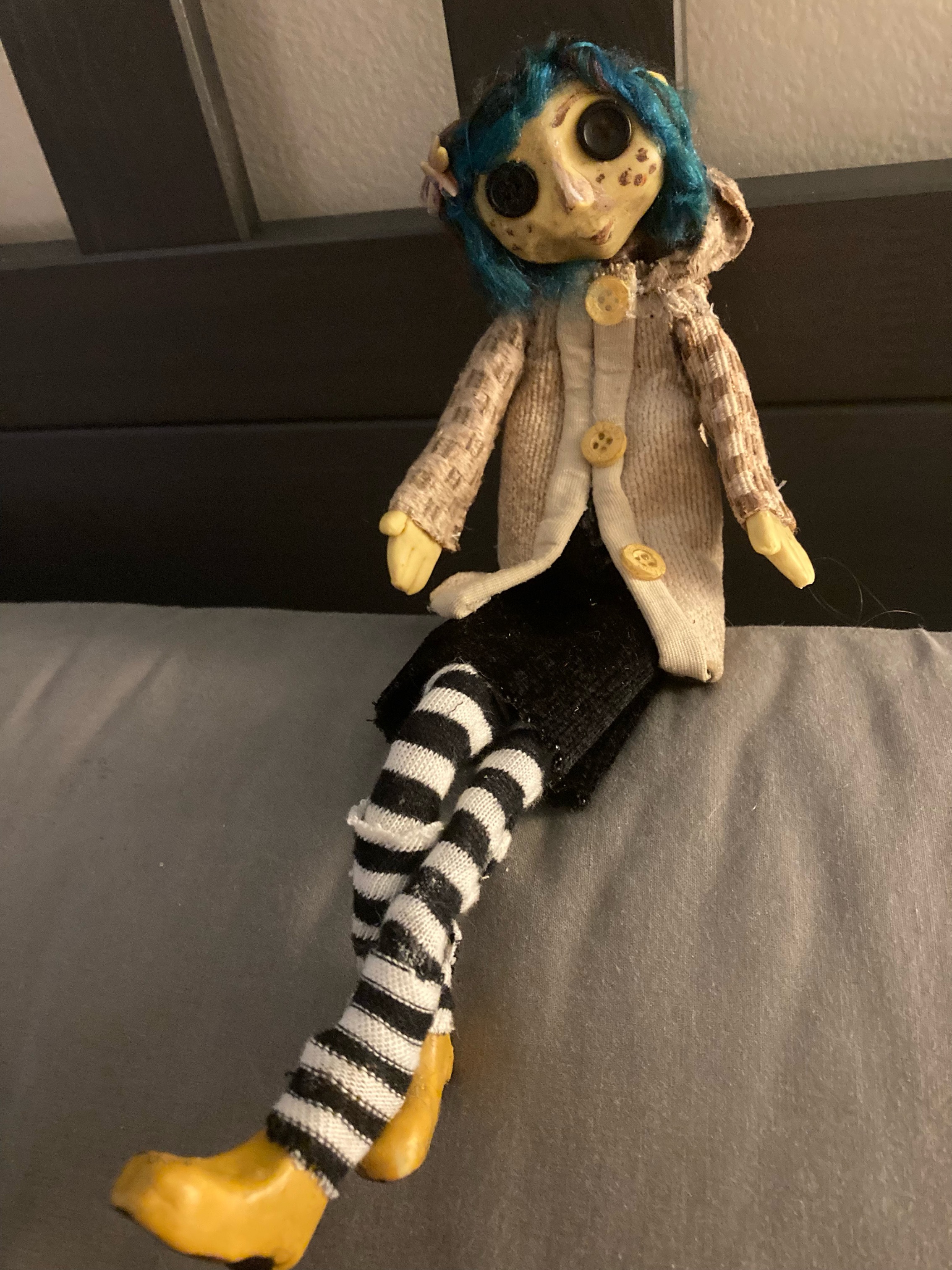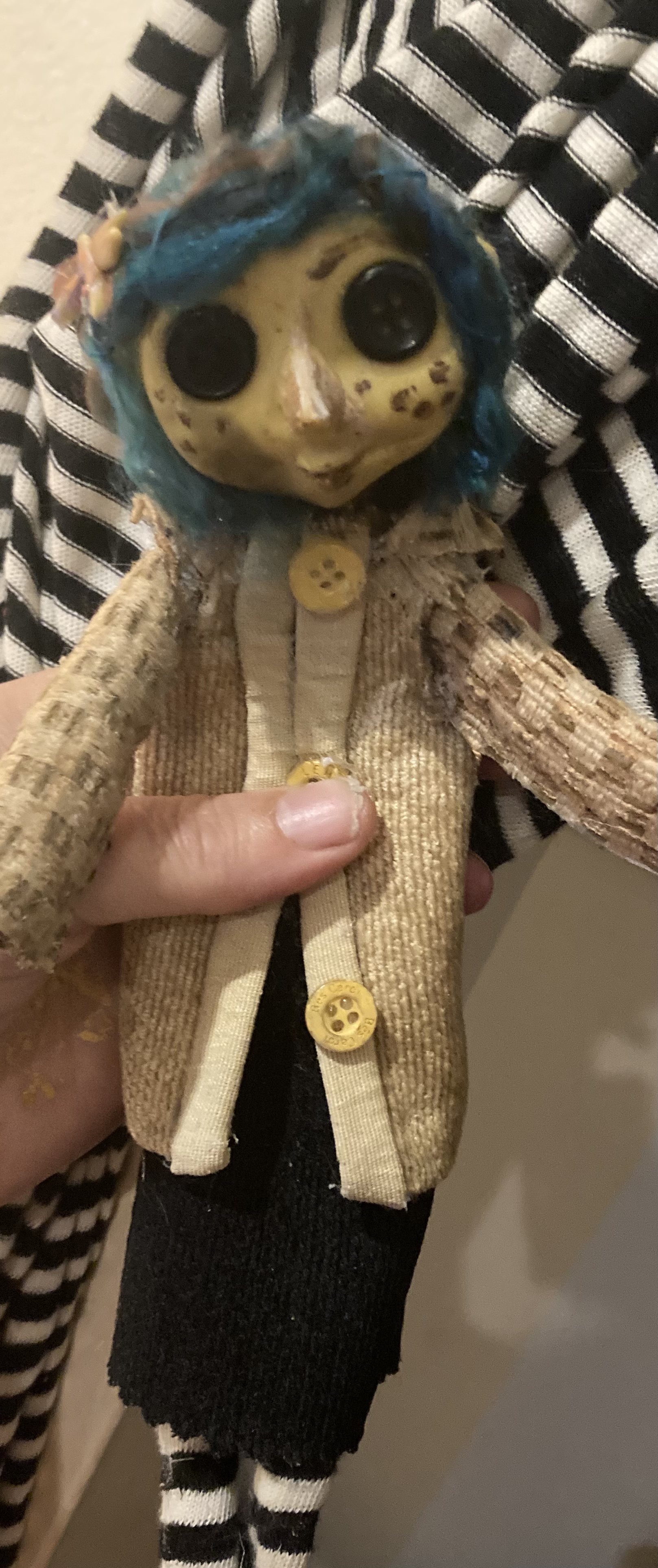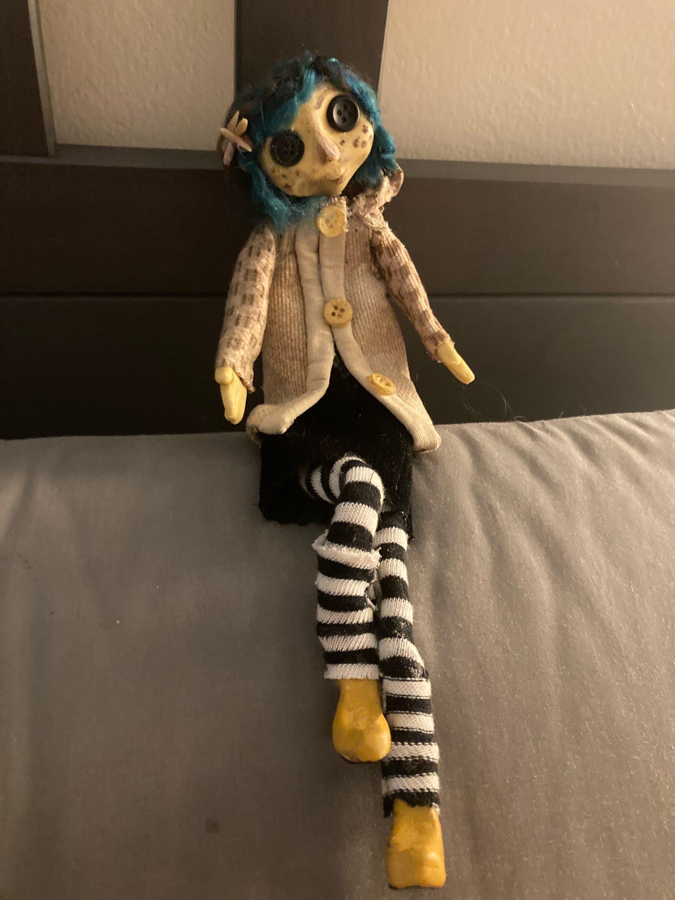 Inspired by the film and book by Neil Gaiman, this is my version of the Coraline doll.