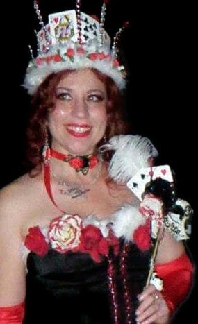 This listing is for a custom-made Red Queen Playing Card Crown. Embellished with white faux fur, tiny red silk rosebuds and red sparklies!