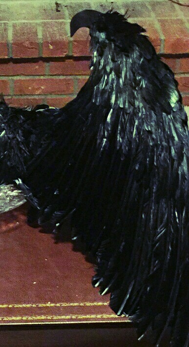 Black Feather Maleficent wings. Approx. 3 feet wide by 2 1/2 feet tall. Adjustable clear straps fit adult or child.