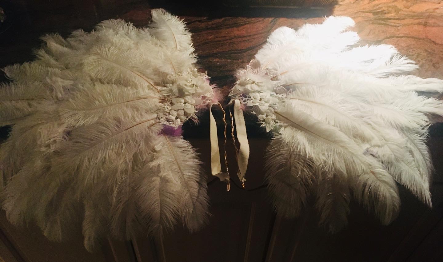 Feathered costume wings✨. This pair is about 4 feet wide and 3 feet tall.